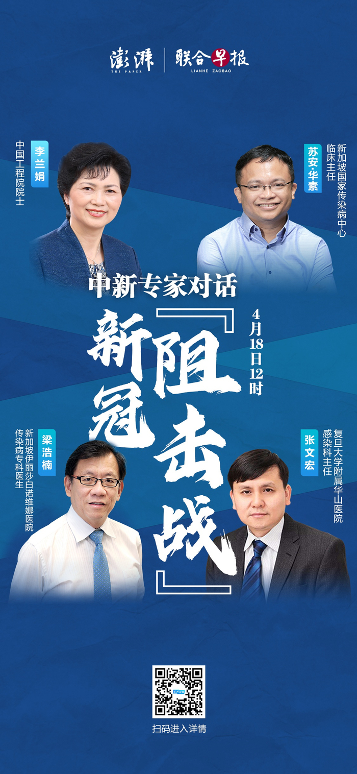 4月18日(周六)12时,由上述四位专家参与的“中新专家对话新冠‘阻击战’”视频连线访谈节目将在澎湃新闻客户端播出,敬请期待。