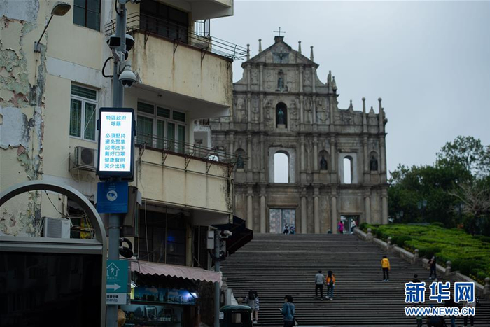 3月2日拍摄的澳门大三巴牌坊。新华社记者 张金加 摄