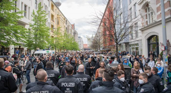 4月25日,德国警方在首都柏林逮捕100多名反对对抗新冠疫情而采取的封锁措施的抗议者。