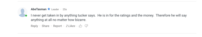 “塔克说的任何话我都不会上当。他就是为了收视率与金钱,因此,他什么话都会说,无论多么怪异的话。”↓
