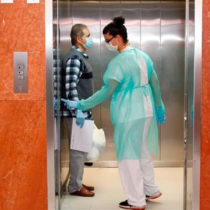 ▲资料图片:在西班牙巴塞罗那巴尔-德埃夫龙大学医院,一名新冠肺炎患者(左)病愈出院。(巴尔-德埃夫龙大学医院供图)