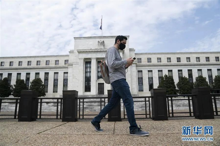 ▲4月29日,在美国华盛顿,一名戴口罩的男子从美国联邦储备委员会大楼前走过。新华社记者 刘杰 摄