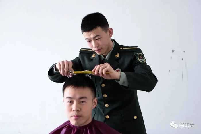 这一试,让刘一鸣找到了一种久违的成就感。“刚开始时,我也不会,只能硬着头皮上,几乎都是3mm的定长梳推,后来开始在网上系统学习,慢慢熟练了,很多战友都会找上门。”刘一鸣说。