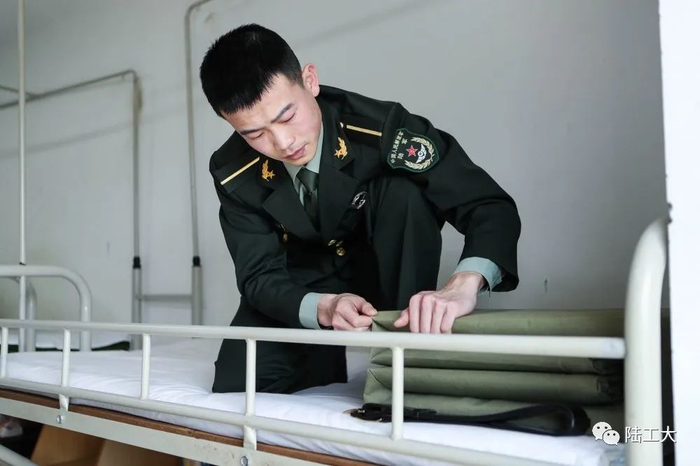 刘一鸣认真整理内务
