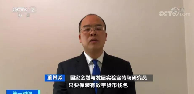 国家金融与发展实验室特聘研究员 董希淼:可以不开立银行账户或者支付账户,只要你装有数字货币钱包,你就可以使用央行数字货币。
