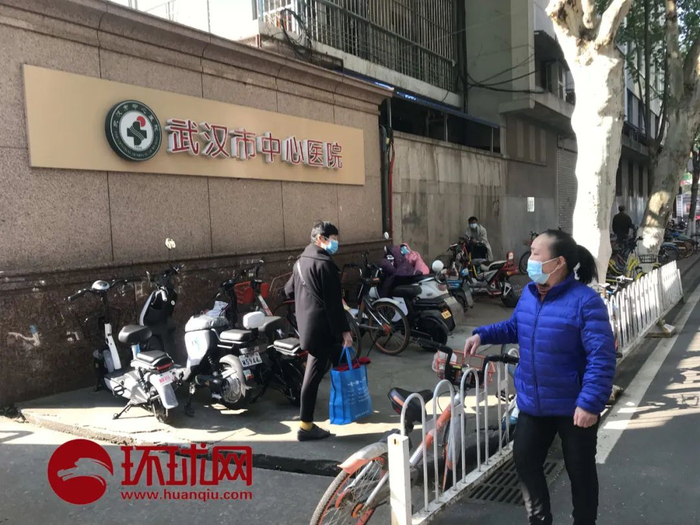 4月12日,和金凤见面的地点约在了武汉市中心医院南京路院区的门口。医院大门可以自由进出,但疫情的痕迹还处处可寻,在靠近住院部仁济楼的柱子上贴着“污染通道!请止步”,门口被拦着,有穿防护服的人员值班。