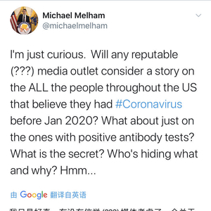 美国新泽西州埃塞克斯县贝尔维尔市市长 迈克尔·梅尔哈姆:“我一直在呼吁,因为我是新泽西州北部被疫情严重影响的城市的市长,所以我觉得我有这样的责任去发声。正因我公开发声,所以我收到大量大量的邮件,成百上千条社交媒体上的消息,人们告诉我,他们也在十一月到十二月重病,他们从来没有生过这么重的病。大量的人对我表达支持,有人说我勇敢公开自己的健康问题,但其实讨论疫情时间线也是一件很有争议的事情,所有的支持让我感到被鼓励。但同时也有令人分心的东西,有些很负面的东西,甚至很多媒体机构,即便是在我们自己的州。我不知道为什么,他们就是拒绝相信我的经历,所以最近我在社交网络上向媒体发起挑战倡议,每一家美国媒体去报道一下:第一,有多少美国人去年十一月、十二月感觉自己感染了或者病得很重;第二,再去追踪报道一下,看看他们其中有多少人就是感染了新冠病毒。