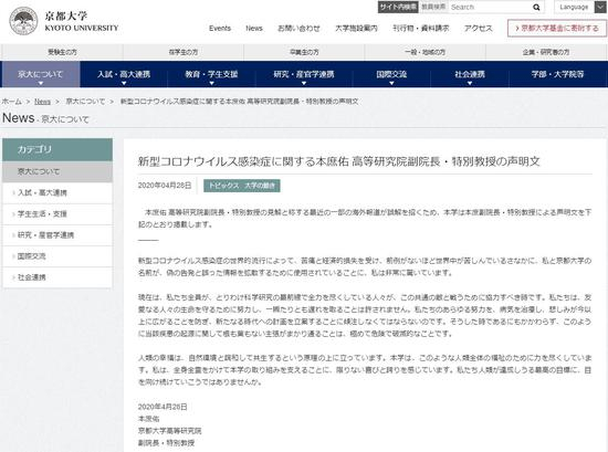 日本诺贝尔奖得主、京都大学教授本庶佑发表声明辟谣,图片来源:维基百科、网站截图