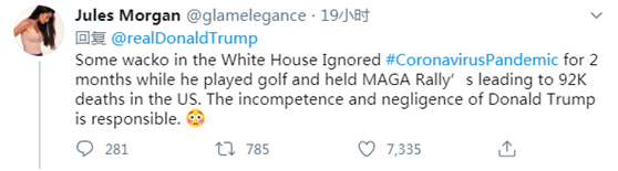 他在推特上不点名地骂中国“一个疯子”,说这个人指责“除中国外的所有国家都应为导致数十万人死亡的病毒负责”。接着显露真实意图,一反手把巨锅扣在中国头上,说是中国抗疫不力造成“全球大规模人员死亡”。