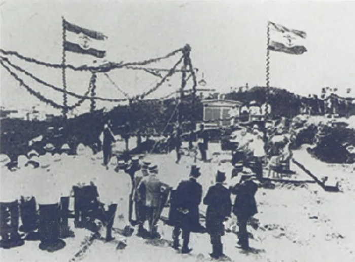 1900年,德军在大港码头西端建立验潮井,安装自动验潮仪,开始水文观测业务。
