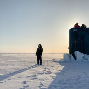 在北极封冻的冰面活动的美国海军核潜艇(美国海军网站)