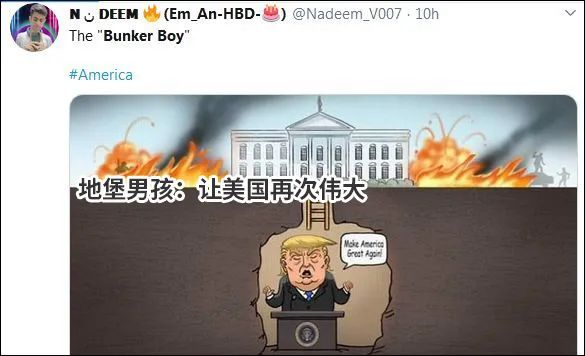 继“宝宝”、“懂王”等一系列绰号之后,特朗普最新被冠上“地堡男孩”之称。
