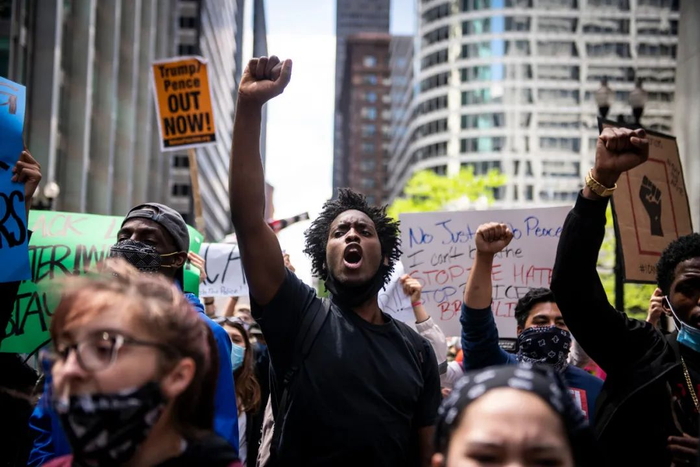 ▲5月30日,民众在美国芝加哥示威抗议警察暴力执法。新华社发(克里斯·迪尔茨 摄)