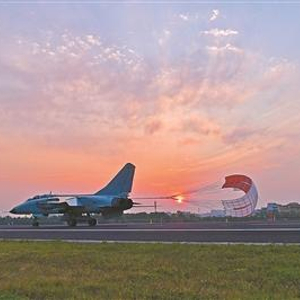 上图:朝霞映空,战鹰顺利返航。(作者提供)