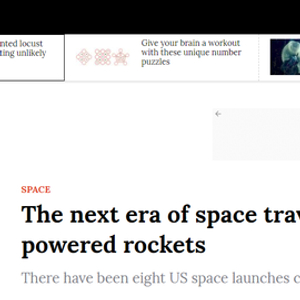 太空旅行的第一步是使用火箭把飞船送入轨道。人们在提到火箭发射时总会想到大型燃料发动机,在可预见的未来,由于重力的限制,它们还会继续使用。