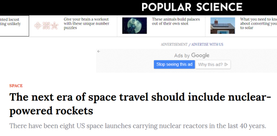 美将研发核动力火箭 能量密度是普通火箭400万倍