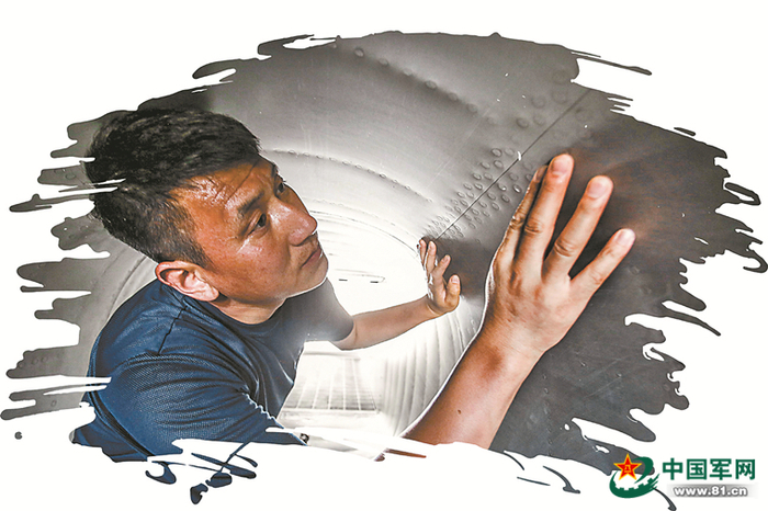 研究完工作计划,已是次日凌晨3点,贾军锋和战友立刻忙碌起来。到了晌午,高原火辣辣的太阳便开始展现它的威力。出门时还穿着棉大衣的贾军锋,此时脱得只剩单裤短袖,布满汗渍的衣裳紧贴在他宽阔的脊背上。发动机舱在飞机顶部。一连几个小时,贾军锋就跪立在发动机舱上作业。高原碧空如洗,远处山巅的白雪映照着他脸庞上滴落的汗水,泛着闪闪银光。