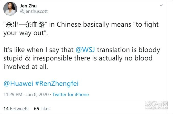 但也有网民指出《华尔街日报》翻译错误。譬如有人指出,“杀出一条血路”是句常用中文俗语,就是“从困境中打开一条出路”的意思。