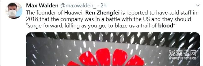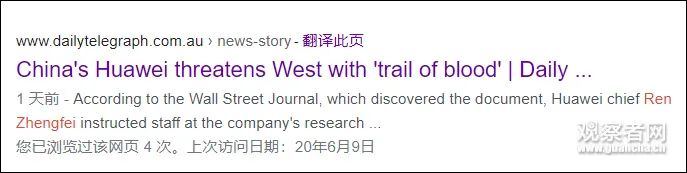 而此文一经其他媒体转载,火药味更加浓重。BBC新闻网称华为发起了“媒体闪击战”;《泰晤士报》网站则叫嚣“华为创始人对西方宣战”;澳媒《每日电讯报》干脆直接说“华为威胁要让西方血流成河”。