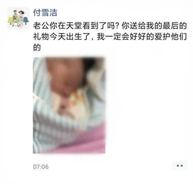 2月7日凌晨,武汉市中心医院官方微博发布消息,该院眼科医生李文亮经抢救无效去世。当时付雪洁已怀有身孕,悲痛之下她出现了低血压和出血等症状,不得不住院保胎,情况稳定后她回到了枣阳娘家养胎。