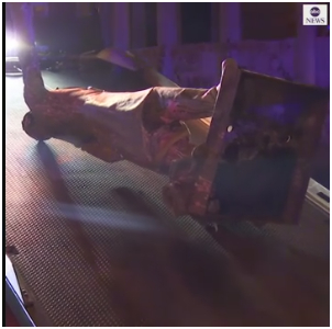 倒下的雕像被拖车拖走