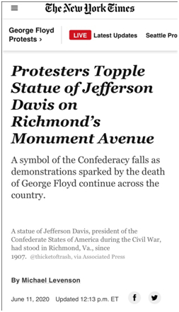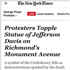 《纽约时报》说,戴维斯的雕像,是耸立在里士满纪念碑大道上众多著名的邦联纪念碑之一,而这里,曾是邦联的“首都”。