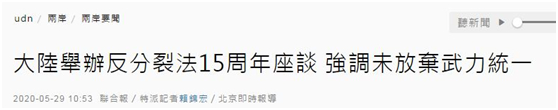 台湾媒体大多读懂了这场座谈会传达的信息,“大陆称不放弃武力”被放到了标题里。