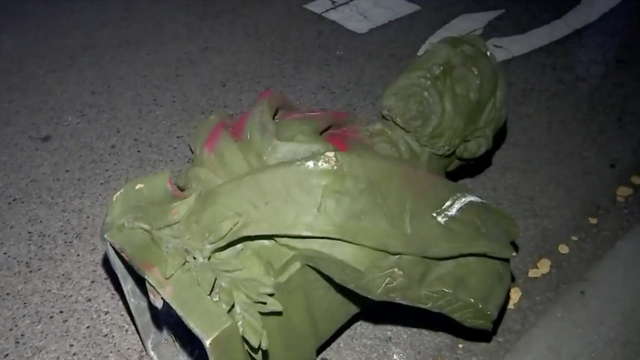 格兰特总统雕像被示威者拉倒 (图自推特)