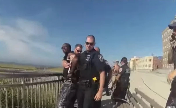 据《纽约每日新闻》报道,事件发生在21日早上8点45分左右,地点位于洛克威海滩木板路上。视频显示,至少有四名警察将这名男子按倒在地,其中一名警察使用了明显的“锁喉”动作。现场的一名男子喊道:“你要掐死他了!放开他!”在发现这名黑人男子失去知觉,这名警察才松开了他。