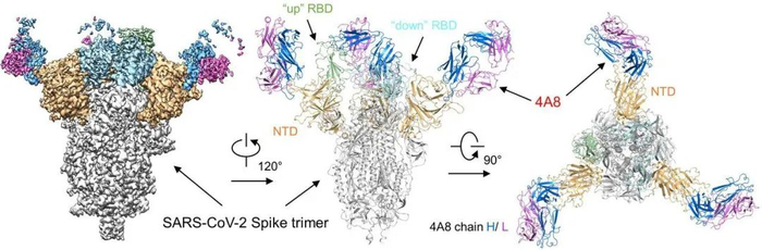 S蛋白和4A8抗体的结构图。军事医学研究院提供