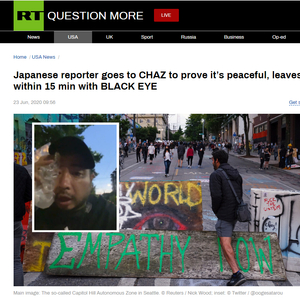 RT报道:日本记者前往“国会山自治区”证明抗议是和平的,结果15分钟内就捂着黑眼圈离开