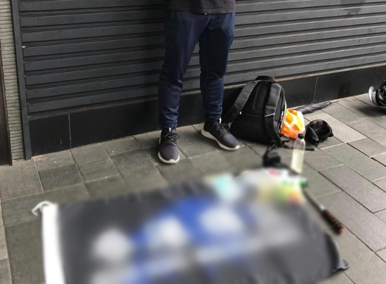 一男子背包中被发现藏有“港独”旗帜,该男子因涉嫌违反国安法被捕。图源:香港“东网”