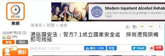 “东网”等港媒称,由于港区国安法6月30日23时实时生效,警务人员7月1日要实时执法,故警队管理层已向前线同事汇报在什么情况下可以执法,其中包括,若在现场发现有人挥舞旗帜、高喊口号及发表演说,涉及煽动、教唆、分裂国家及颠覆国家,已触犯法例。有关旗帜或口号,如涉及“香港独立”、“成立香港国”、“香港独立是唯一出路”、“香港人建国”、“香港独立自强”,无论明示或暗示,也属违法。另外,报道称,警方亦提到,若挥舞“藏独”、“疆独”及“台独”旗也会违法。