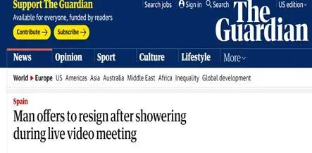 《卫报》:男子在视频直播会议上洗澡后提出辞职