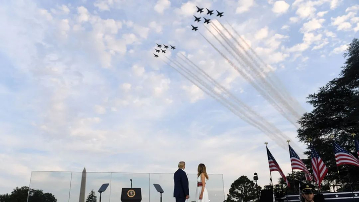 当地时间7月4日,美国举行独立日庆典活动,特朗普及其夫人梅拉尼娅出席相关活动。