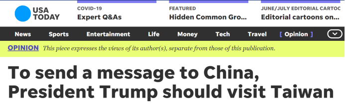 《今日美国报》:为向中国传递信息,特朗普总统应该访问台湾