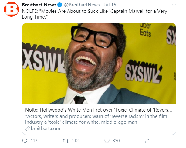 而且,这篇文章针对的目标,还是美国最著名的电影工厂“好莱坞”,称好莱坞正弥漫着一股“逆向种族主义”的“有毒气息”,白人反而在遭到“种族主义”和“法西斯式”的对待。
