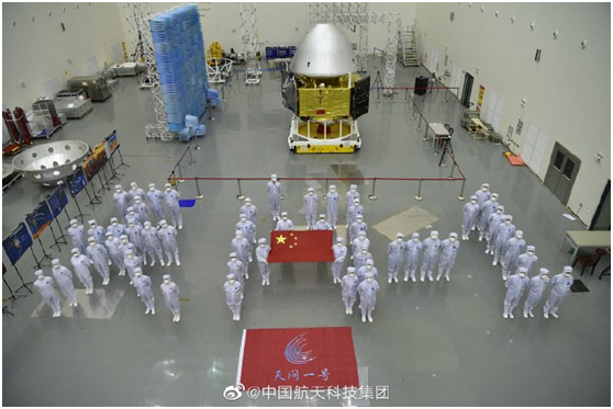 7月23日12时41分,长征五号运载火箭在中国文昌航天发射场点火起飞。中国迈出行星探测的第一步——奔向火星。这是长征五号运载火箭首次执行应用性发射,成功将天问一号火星探测器送入预定轨道。中国航天科技集团在官网及官方微博发布上述消息,并同时发布天问一号火星探测器试验队部分队员合影,这些队员摆出了天问一号中文字样“天问.1”,同时也摆出天问一号拼音首字母缩写的“TW .1”的队形。↓