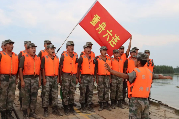▲东部战区陆军某舟桥旅“抗洪模范营”组织军歌联唱活动。蒋佳文摄