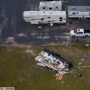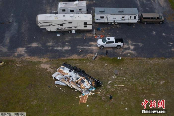 资料图:当地时间7月26日,美国得克萨斯州曼斯菲尔德港,飓风“汉娜”过境后,被摧毁的露营拖车。