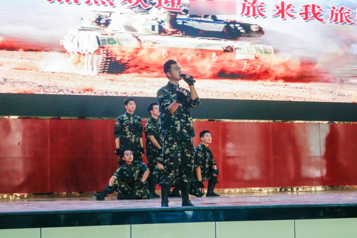 舞台上,官兵们脸涂迷彩、手握钢枪,齐声高歌,将《军人本色》《祖国不会忘记》等歌曲内涵演绎的淋漓尽致,用铿锵有力的歌声演绎出在野训场上战风沙、斗酷暑的豪情,进一步凝聚兵心,激发斗志。
