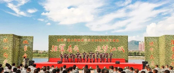 8月1日下午16时,为庆祝中国人民解放军成立93周年,第78集团军某旅驻训场上,一场以“强军有我,逐梦江城”为题的文艺演出如期而至!