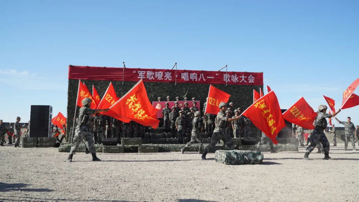 8月1日,第81集团军某旅隆重举办“军歌嘹亮·唱响八一”主题歌咏大会,官兵们用嘹亮的歌声唱响练兵备战的新时代战歌,用满腔的赤诚表达履行使命任务的坚强决心,用实际行动向建军93周年献礼。