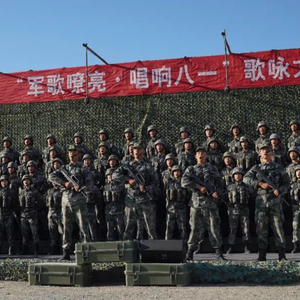 军旗飘扬、军徽闪耀。在八一建军节来临之际,第80集团军某旅在野外驻训场隆重举行“建军节篝火晚会”,官兵们欢聚一堂,载歌载舞,热烈庆祝我军建立93周年。