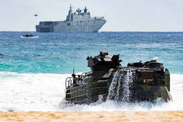与澳大利亚联合演习的AAV-7两栖突击车,该车服役后经过了多次升级改进。