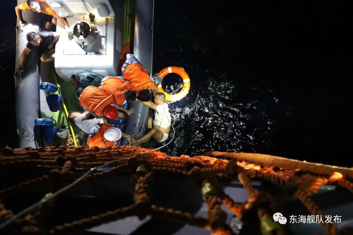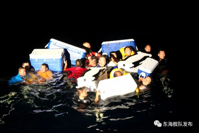 据了解,失火民船为浙江温州籍“兄弟远洋”号海钓船,当晚7时50分机舱起火,船上14名人员全部跳海求生。