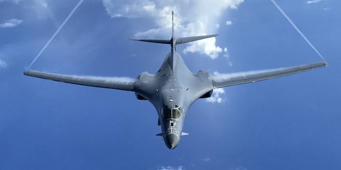 美国空军装备的B-1B轰炸机是美国三大战略轰炸机之一,与B-52、B-2轰炸机相比,B-1B的特点是能够突破音速飞行,实施超音速突防打击。同时该机还能够搭载防区外作战武器,从防区外发起远距离精确打击。美军向东海派出这款颇具进攻性的战略轰炸机,其威胁性不言而喻。