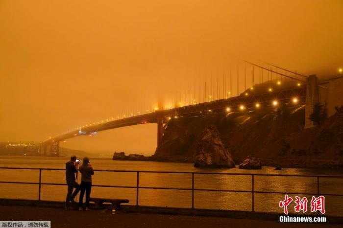 图为当地时间9日烟雾笼罩在美国旧金山湾区上空。