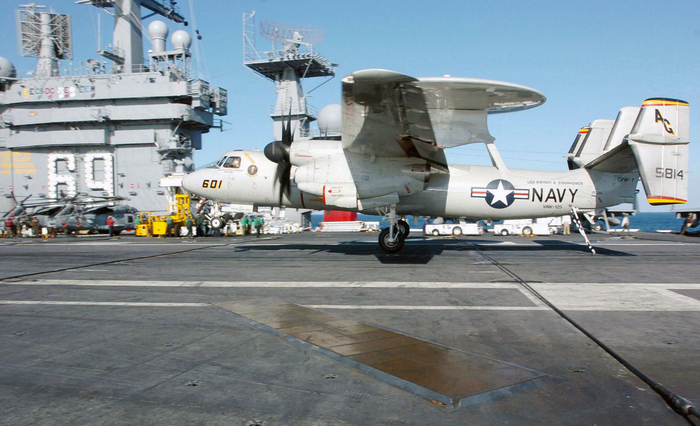 美军航母又出事 预警机着舰时撞上挂弹战斗机