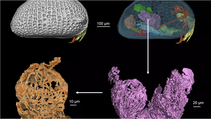 研究团队利用高分辨率显微断层扫描技术对其中的11个标本进行分析,通过近一年的高精度三维图像重建工作,精细还原了这些介形虫的壳体和软躯体(包括附肢、抱握器、曾克氏器、半阴茎、储精囊、卵和巨型精子)的形态特征。研究人员称,近距离观察介形虫是研究人员“生命中最特殊的时刻之一”。